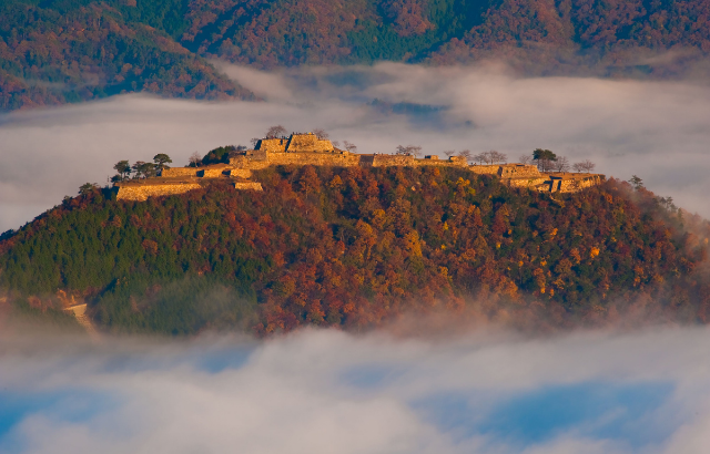 Dibangun pada tahun 1443 oleh pengikut klan Yaman, kastil ini dulu nya berfungsi sebagai benteng yang memiliki letak strategis di era Sengoku. Namun saat ini kastil ini hanya tersisa reruntuhan nya saja yang letak nya di Gunung Kojo di kota Asago, Prefektur Hyogo. Namun hal ini menjadi daya tarik utama dari Kastil Takeda dan merupakan salah satu destinasi paling menakjubkan di Jepang.